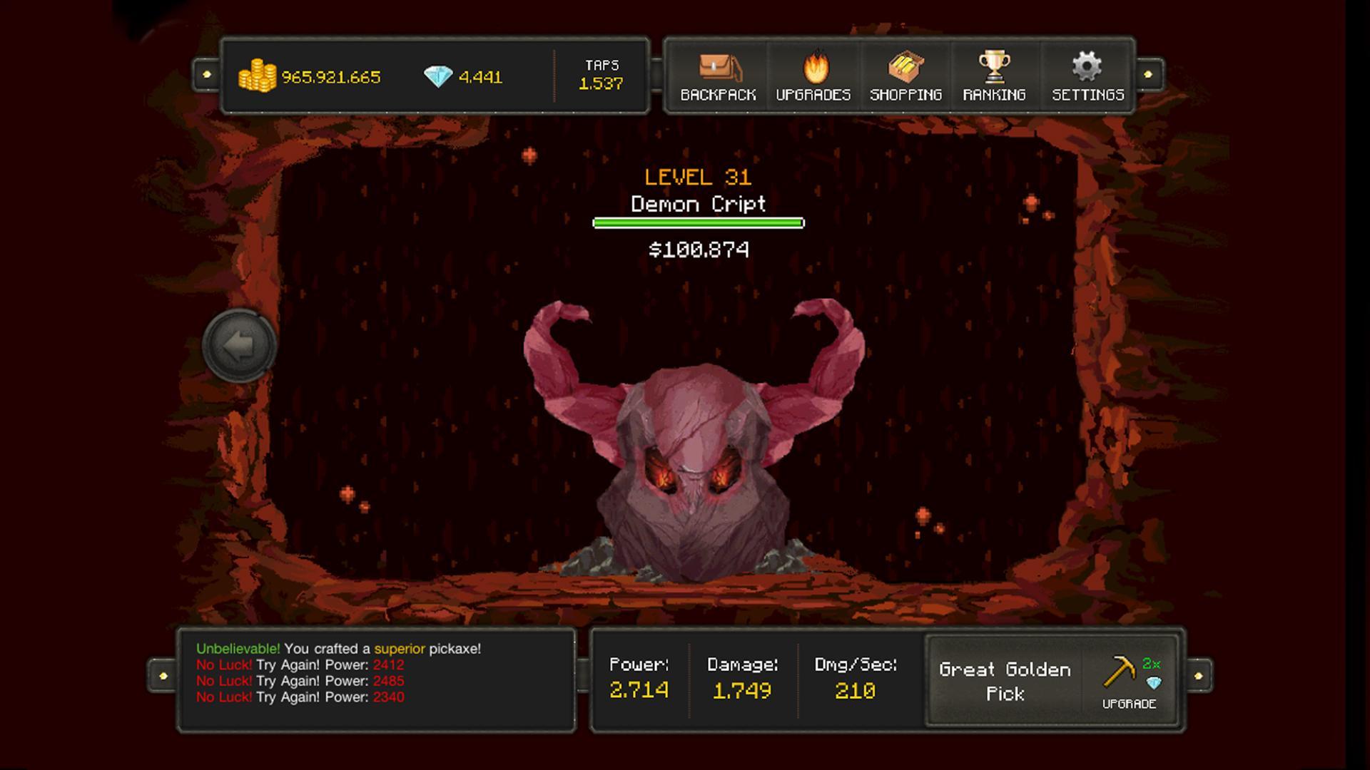 + Craforcez de meilleures pickax et améliorez vos outils et compétences pour devenir un mineur épique et un forgeron.