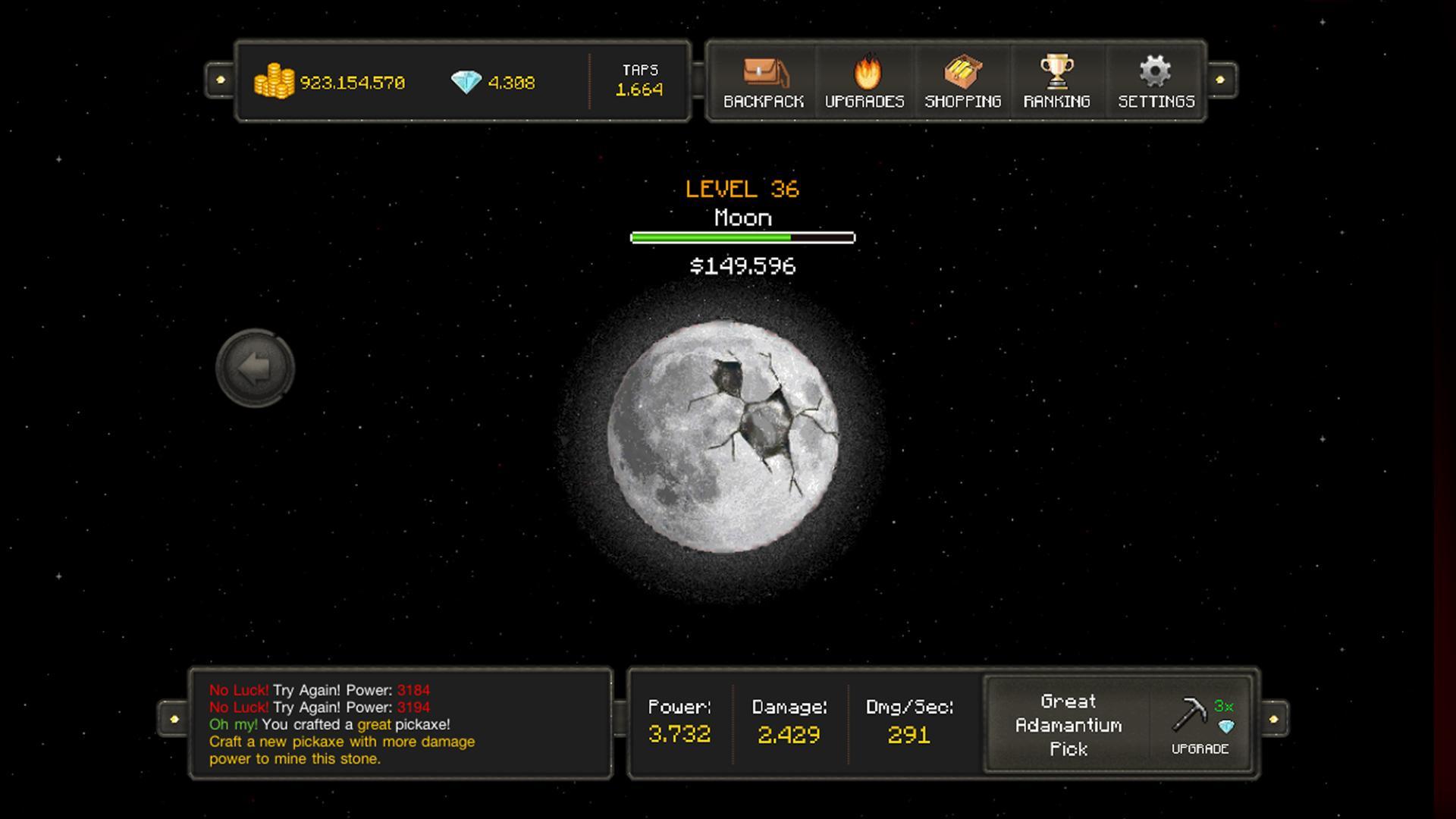 + Mine des dizaines de pierres différentes. Des roches sacrées et radioactives aux pierres de pouce maudite et même des planètes entières!